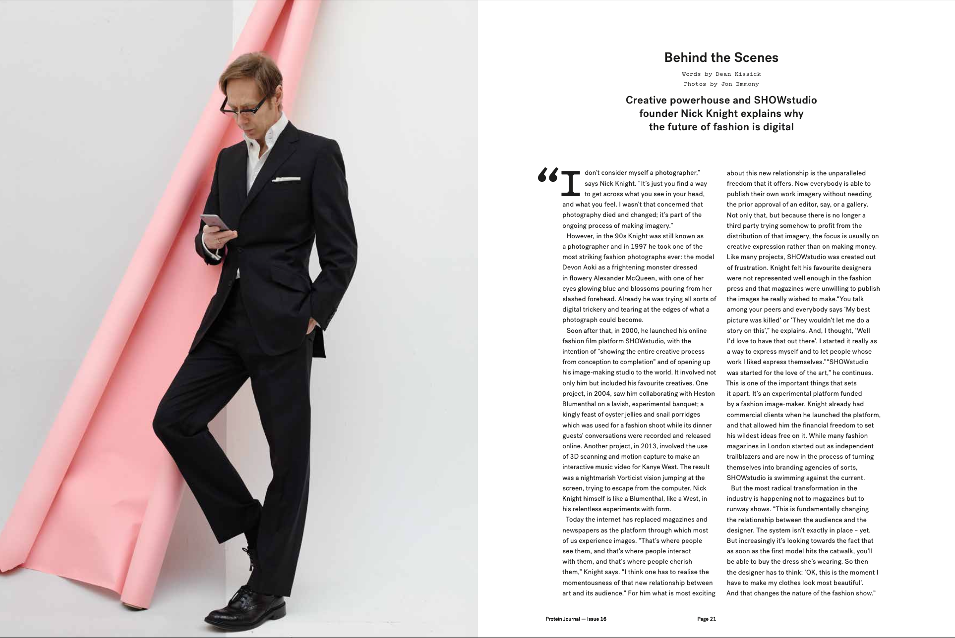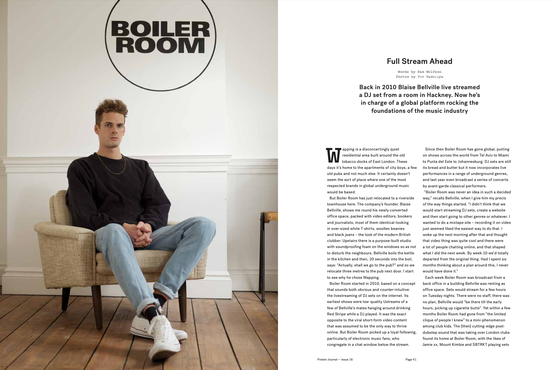 Of course, that’s not all we’ve got to offer. Inside we speak to pioneer Nick Knight about the future of fashion, listen to Holly Herndon’s trippy, net-inspired music, look at how Boiler Room is taking over the world, travel to Beirut and toast Marije Vogelzang’s mouth- watering new approach to food design. All this and more in the latest issue of Protein. Dig in!