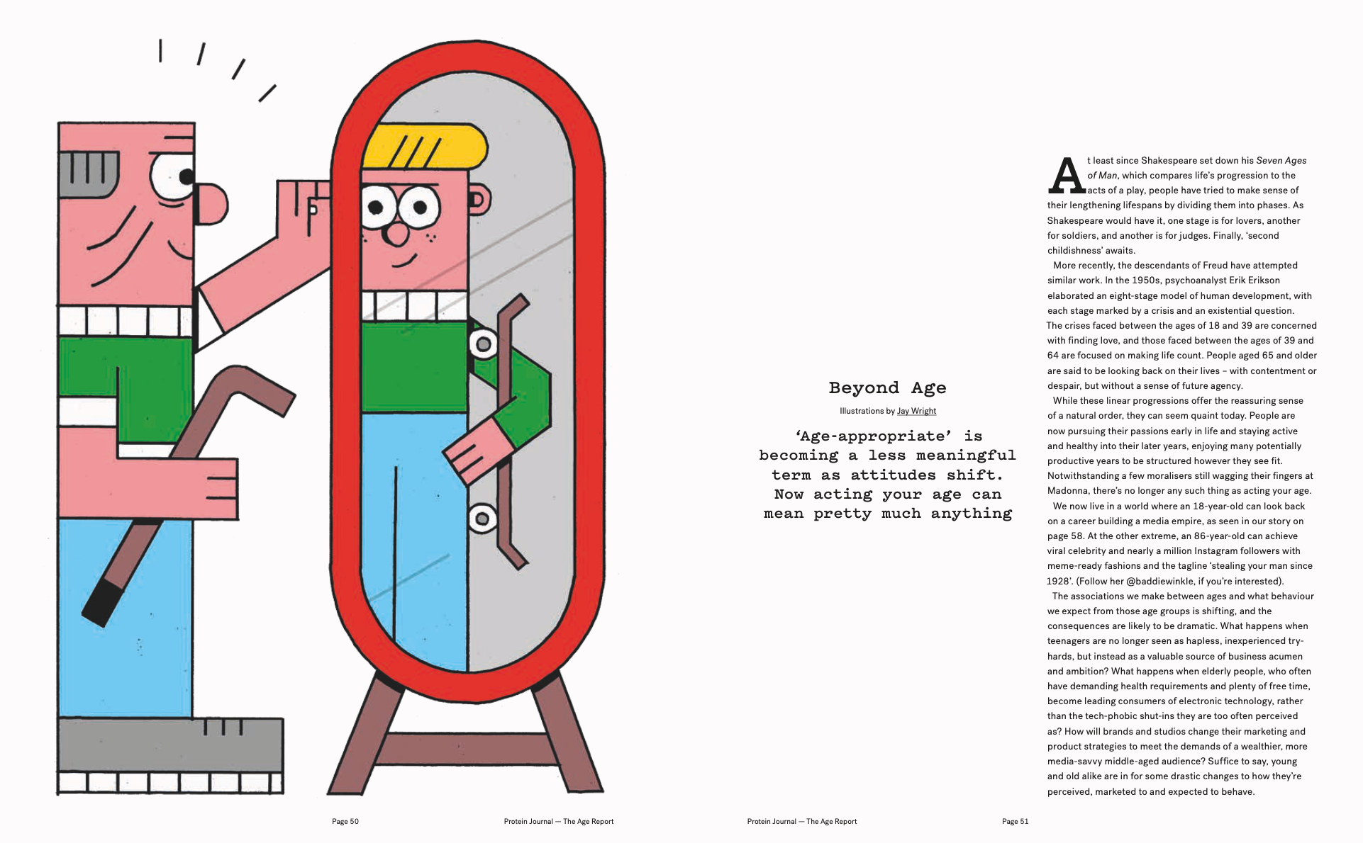 But the biggest driver is a shift in attitude. People want to be defined by their interests and aspirations not their date of birth. The implications of this are both disruptive and exciting, which is why we’ve decided to explore the phenomenon further this issue. Turn to our report to find out why everything, from how we treat our elders to who adolescents aspire to be, is changing.